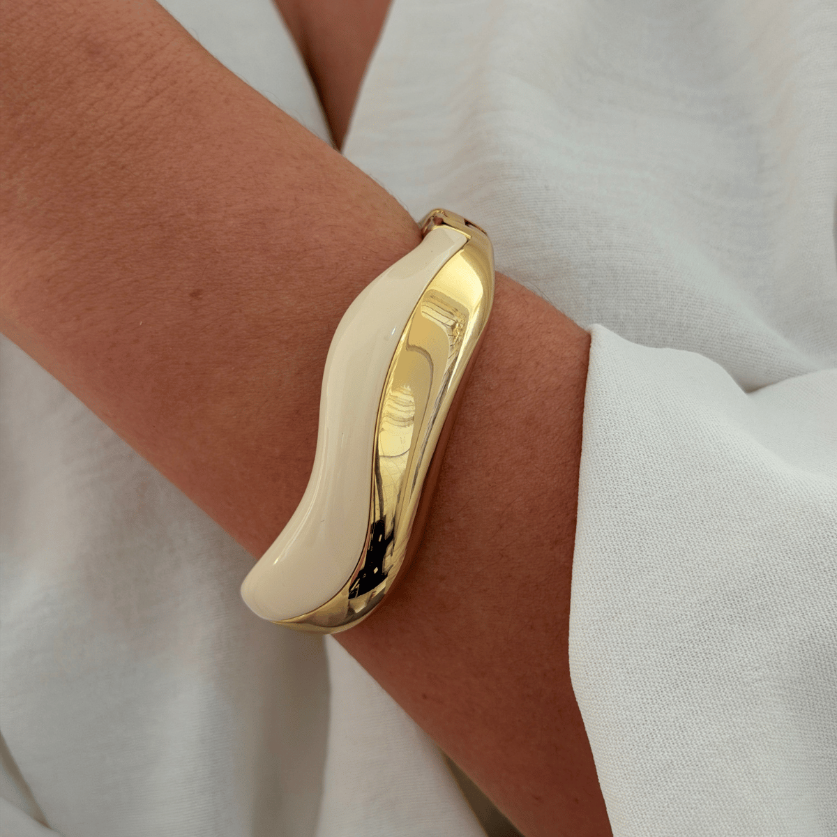 Bracelete robusto com design orgânico, confeccionado em metal de alta qualidade com detalhe em resina que traz personalidade e sofisticação à peça. O formato fluido e contemporâneo valoriza o pulso e transforma qualquer produção, do casual ao elegante. Ideal para quem busca um acessório marcante, moderno e cheio de estilo.