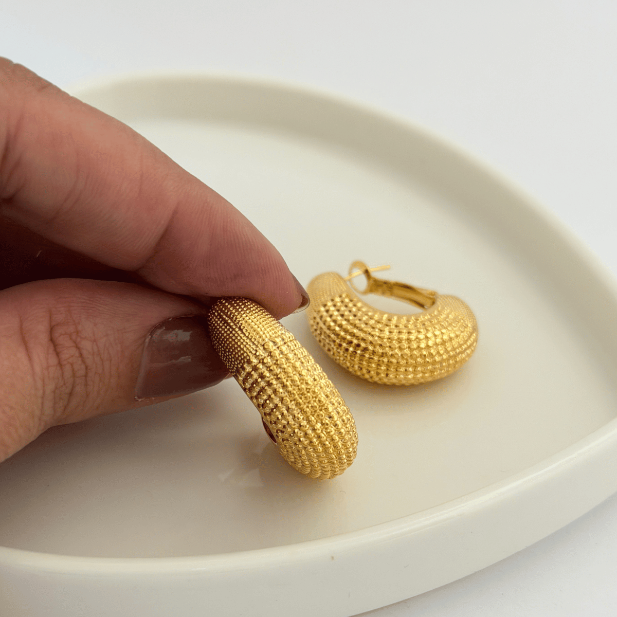 Brinco argola maxi com acabamento texturizado, trazendo sofisticação e personalidade ao visual. Seu design imponente e moderno valoriza qualquer produção, do dia a dia a ocasiões especiais. Uma peça versátil e elegante, perfeita para quem busca um acessório marcante e cheio de estilo.