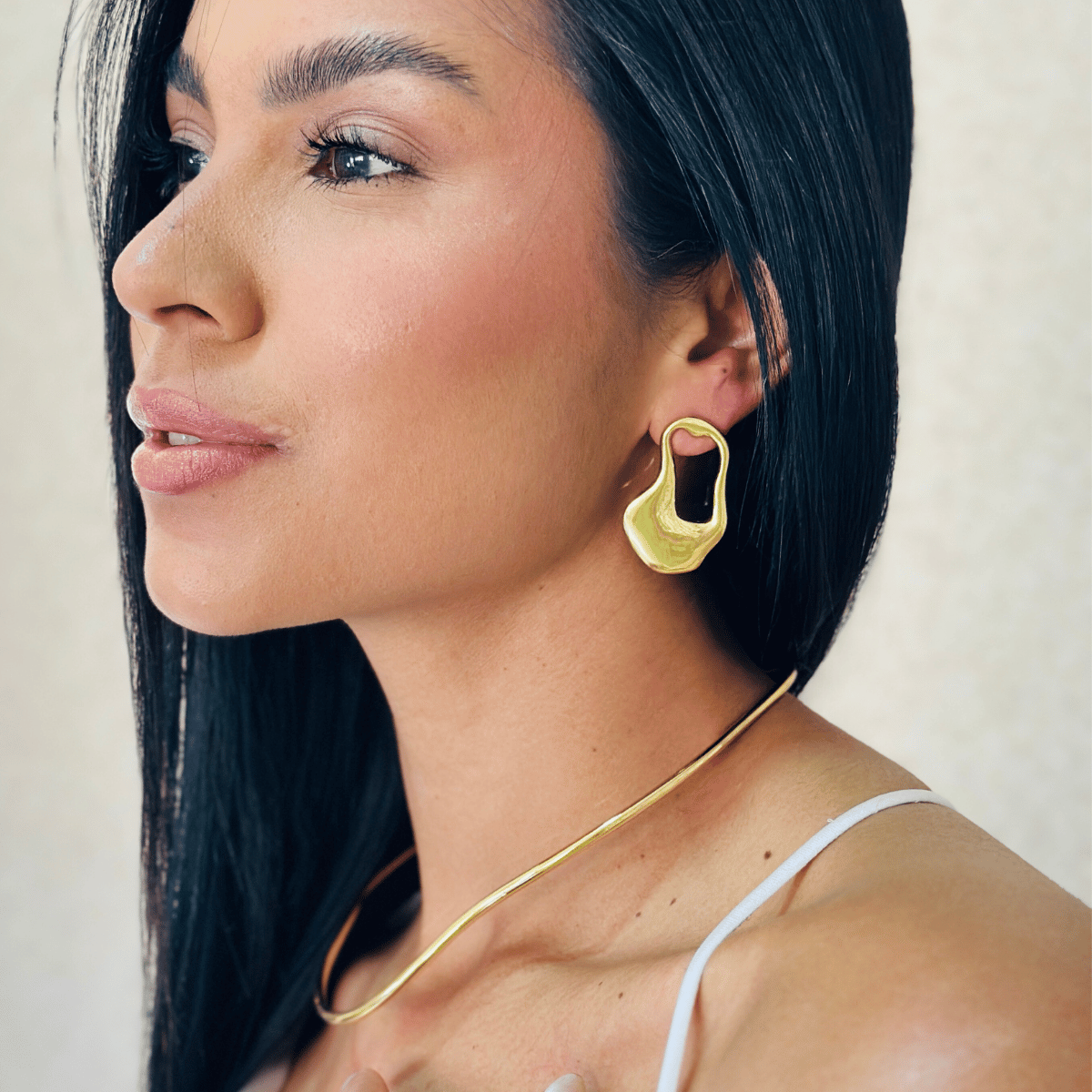 Este brinco com design orgânico em tamanho G é ideal para quem busca um visual marcante e moderno, com formas fluidas e naturais que remetem à beleza da imperfeição.