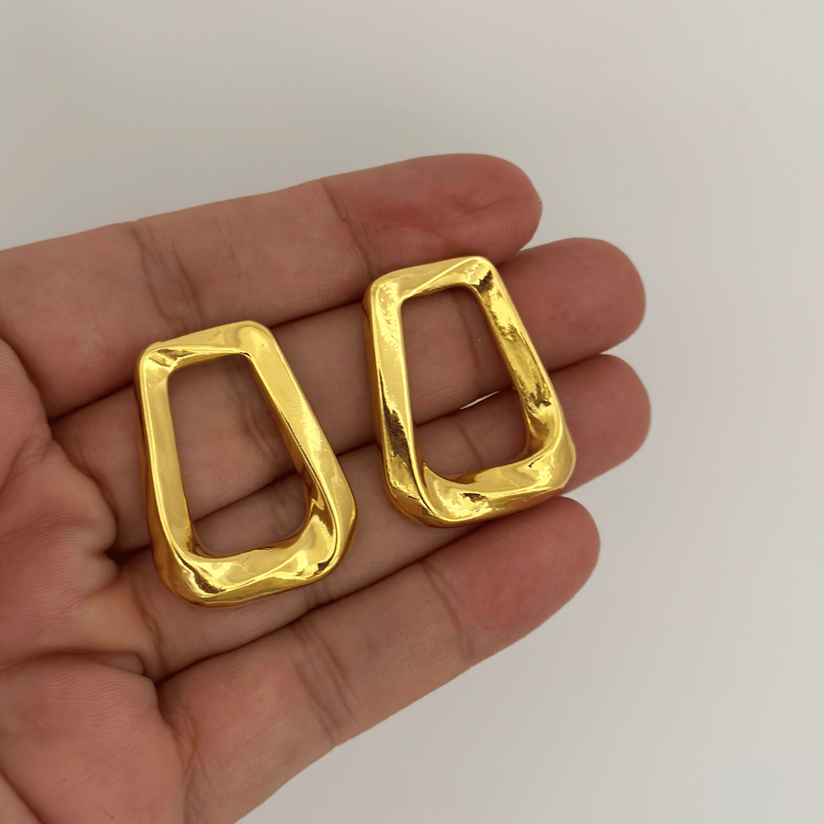 Moderno e cheio de personalidade, o brinco orgânico retangular combina linhas retas com formas suaves, criando um visual elegante e contemporâneo. Ideal para quem gosta de peças únicas e estilosas.