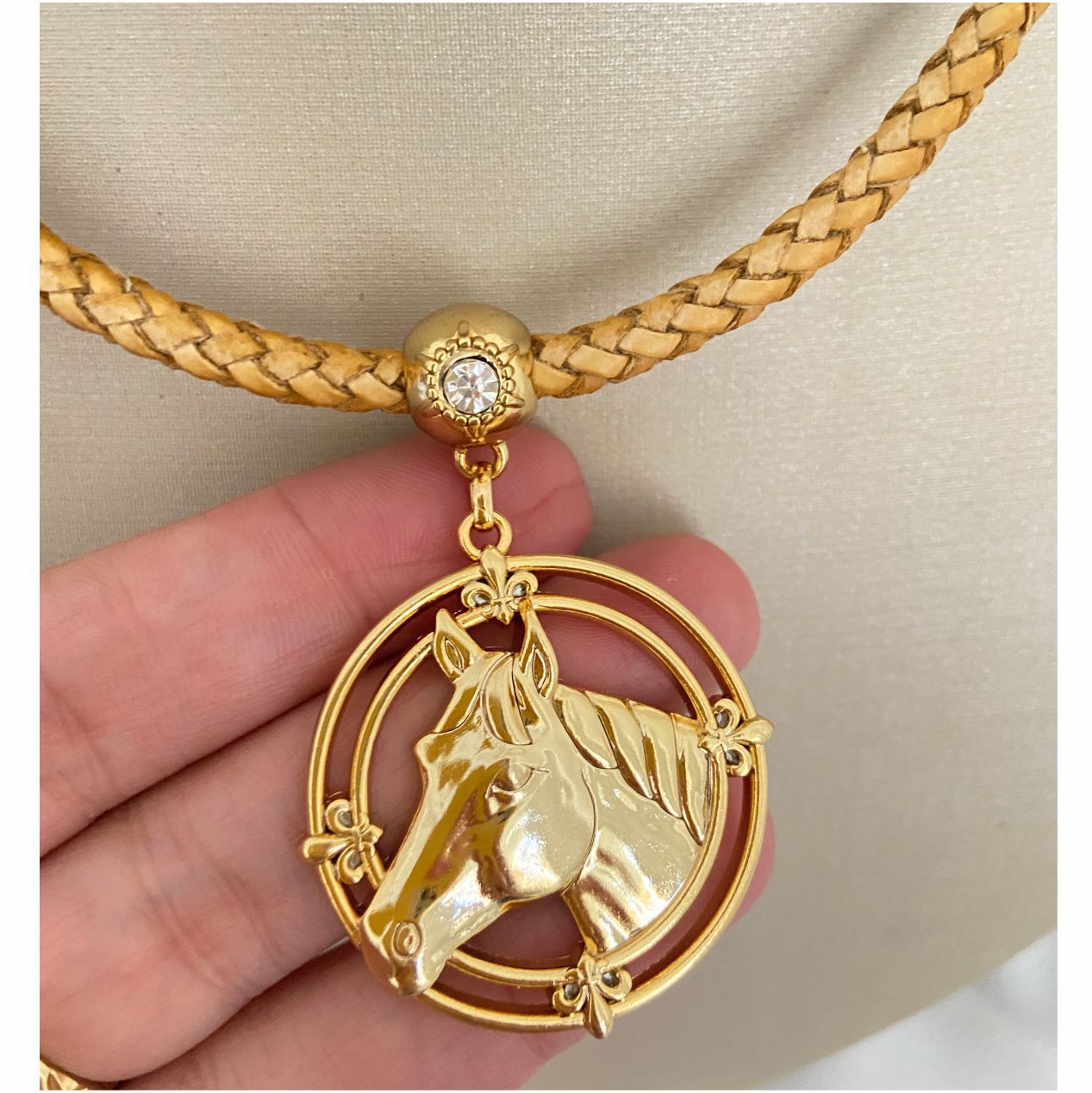 Colar 40Cm Couro Medalha Cavalo