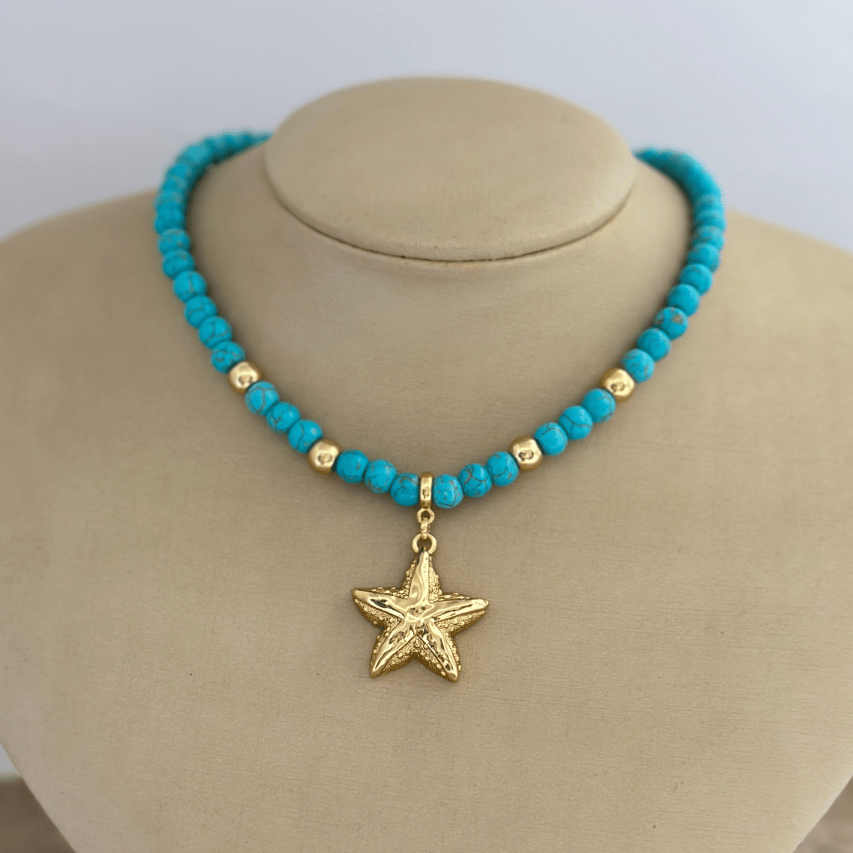 O Colar de 40cm com pedras naturais e pingente de estrela do mar é a combinação perfeita entre elegância e energia da natureza. Cada pedra é única, trazendo charme e autenticidade à peça.