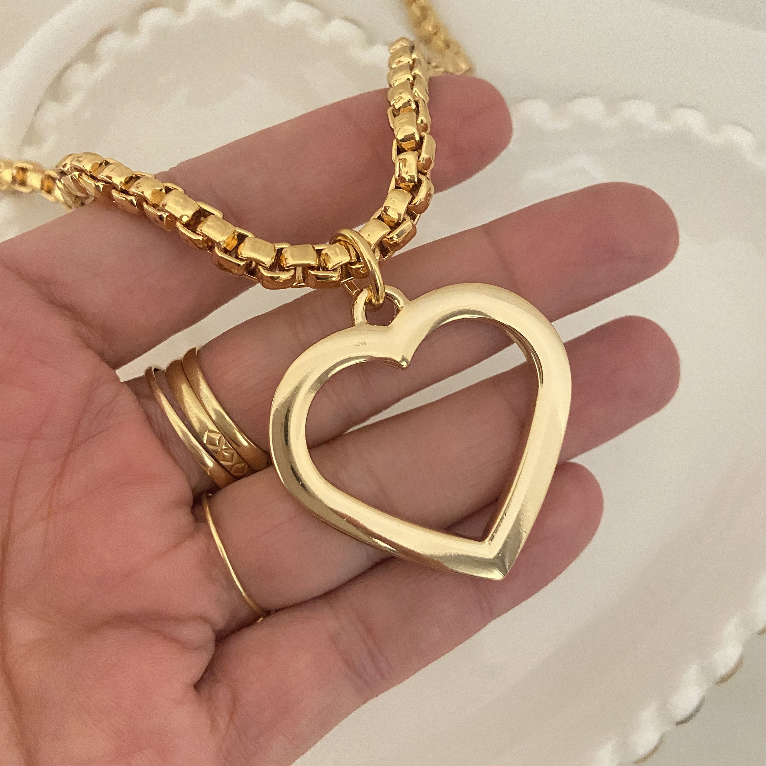 Colar 45Cm Veneziana Grossa Coração Vazado