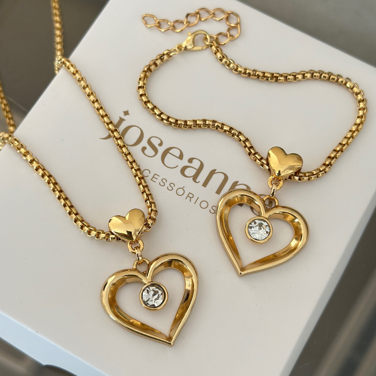 Encante-se com a delicadeza e o brilho do Conjunto Coração Ponto de Luz!
